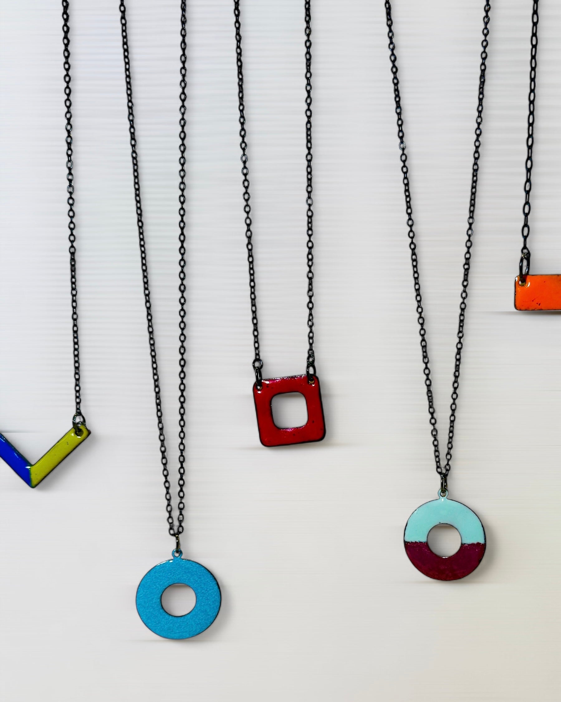 1" circumference Enamel on Copper with black base metal chain.Longer chains available. Email with length request after purchase.